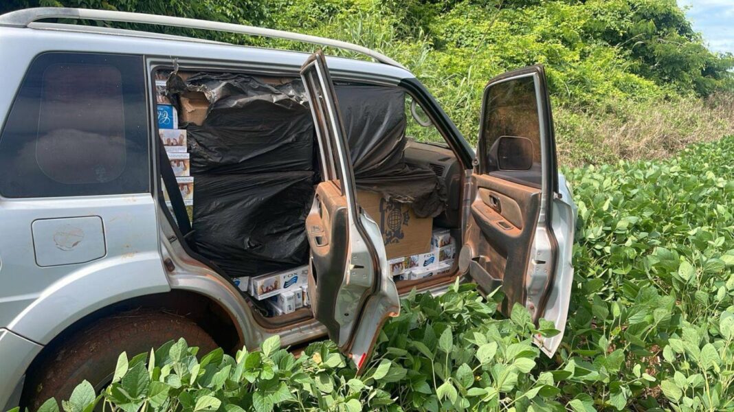 Na manhã desta sexta-feira, 22 de novembro, por volta das 10h, a equipe da Patrulha Rural do 31º Batalhão realizou uma importante apreensão no município de Tupãssi. Durante patrulhamento pela zona rural, os agentes identificaram um veículo entrando bruscamente em um carreador, aparentemente para evitar passar próximo à viatura policial. Diante da atitude suspeita, foi iniciado acompanhamento por cerca de 3 km. O motorista abandonou o veículo e fugiu em direção a uma área de mata fechada, não sendo localizado até o momento. Durante a vistoria no automóvel, foram encontradas aproximadamente 40 caixas de cigarros de origem paraguaia, caracterizando contrabando.