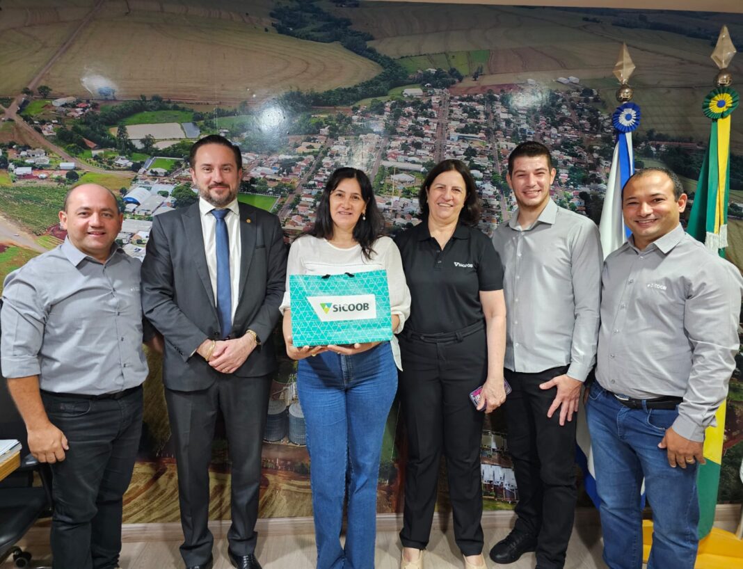 Na manhã de terça-feira (03/12) a Prefeita Elza Haase Rodrigues recebeu em seu gabinete uma equipe do Sicoob Médio Oeste, composta pelo Presidente do Conselho de Administração, Rafael Katarinhuk; Diretora Superintendente, Nadir Lulu; Diretor Comercial, Rodrigo Dencati da Cruz; Gerente da Agência de Jesuítas, Allan Mendes e Gerente de Comunicação e Marketing, Dito Silva.