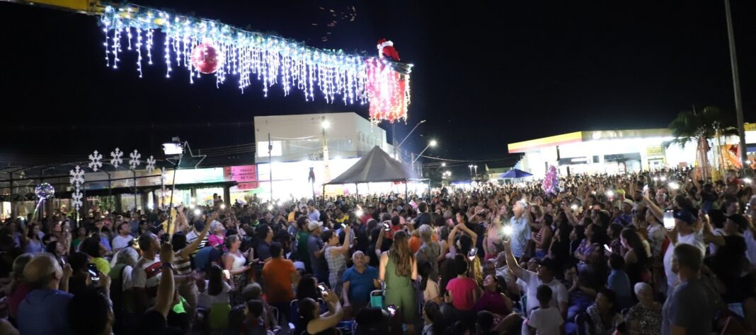 Na quinta-feira, dia 5, a cidade de Assis Chateaubriand vivenciou uma noite memorável com a abertura oficial do Natal Luz. O evento, que reuniu milhares de pessoas na Praça dos Pioneiros(Chafariz), marcou o início das festividades natalinas, trazendo alegria e emoção aos moradores e visitantes. O ponto alto da celebração foi o acendimento das luzes natalinas na área central do município, um espetáculo visual que encantou o público presente. A chegada do Papai Noel foi um dos momentos mais esperados da noite. De forma inédita, ele desceu de um guindaste, distribuindo balas e sorrisos para as crianças e adultos que o aguardavam ansiosamente.