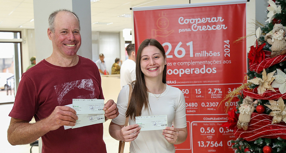 Nesta sexta-feira metade do montante é pago aos cooperados. O restante será repassado diretamente nas contas bancárias dos cooperados, após a AGO (Assembleia Geral Ordinária), marcada para 31 de janeiro, quando será realizado o anúncio do faturamento da Cooperativa.