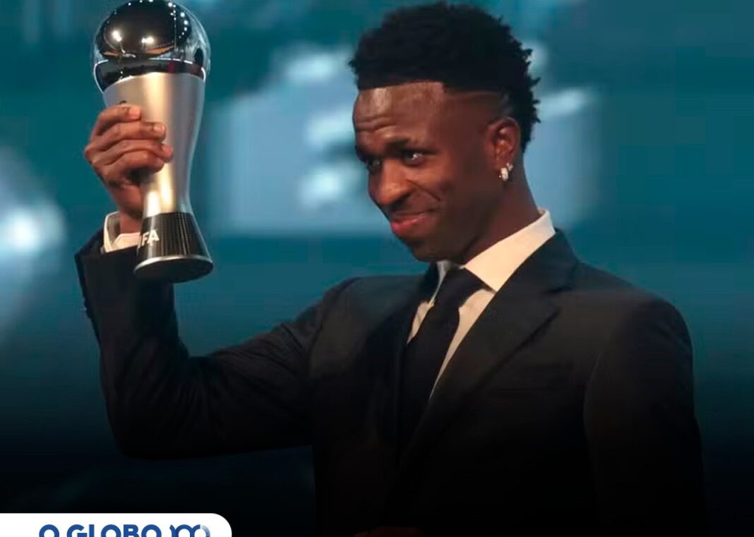 O atacante brasileiro Vinícius Júnior foi eleito o melhor jogador do mundo pela FIFA, na cerimônia do prêmio The Best, realizada em Doha, Catar. A honraria marca uma vitória histórica para Vinícius, que se consagra como o segundo brasileiro mais jovem a receber o título, atrás apenas de Ronaldo Fenômeno. Vinícius, que atua pelo Real Madrid desde 2018, viveu uma temporada espetacular em 2023/24, marcando 26 gols e 11 assistências em 49 partidas. Suas atuações decisivas ajudaram o Real Madrid a conquistar títulos importantes, como a Liga dos Campeões da UEFA e a La Liga.