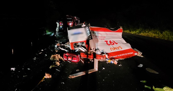 Conforme informado pelo Corpo de Bombeiros, a batida envolveu um caminhão carregado com leite se envolveu em forte batida com a ambulância do Samu. Devido a força do impacto, a ambulância ficou completamente destruída, assim como a cabine do veículo de carga. No local do acidente foi constatado o óbito da enfermeira, do médico e do passageiro que estavam encarcerados no veículo. O motorista chegou a ser encaminhado ao hospital, mas também não resistiu aos ferimentos.