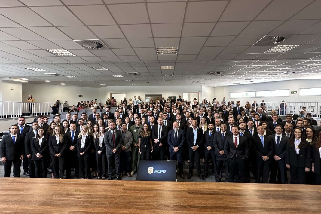 A Polícia Civil do Paraná (PCPR) realizou nesta sexta-feira (10) a solenidade de posse de 103 novos servidores contratados para compor o efetivo da instituição. São mais 88 agentes de polícia judiciária, 10 delegados de polícia e cinco papiloscopistas aprovados no concurso público realizado em 2021 e que foram convocados no final de 2024. O evento de posse aconteceu no auditório do Batalhão de Patrulha Escolar da Polícia Militar, em Curitiba.