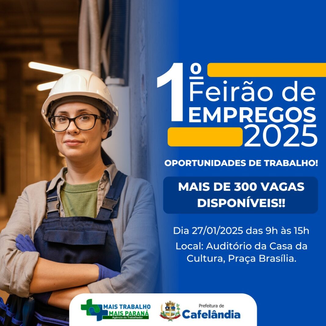 A Agência do Trabalhador oferecerá mais de 300 vagas de emprego. O Feirão é uma excelente oportunidade para os moradores começarem o ano conquistando uma vaga no mercado de trabalho e iniciar 2025 com tudo.