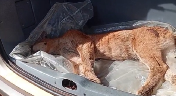 Nas imagens, pode ser observado o tamanho do felino e também os ferimentos causados pelo acidente.