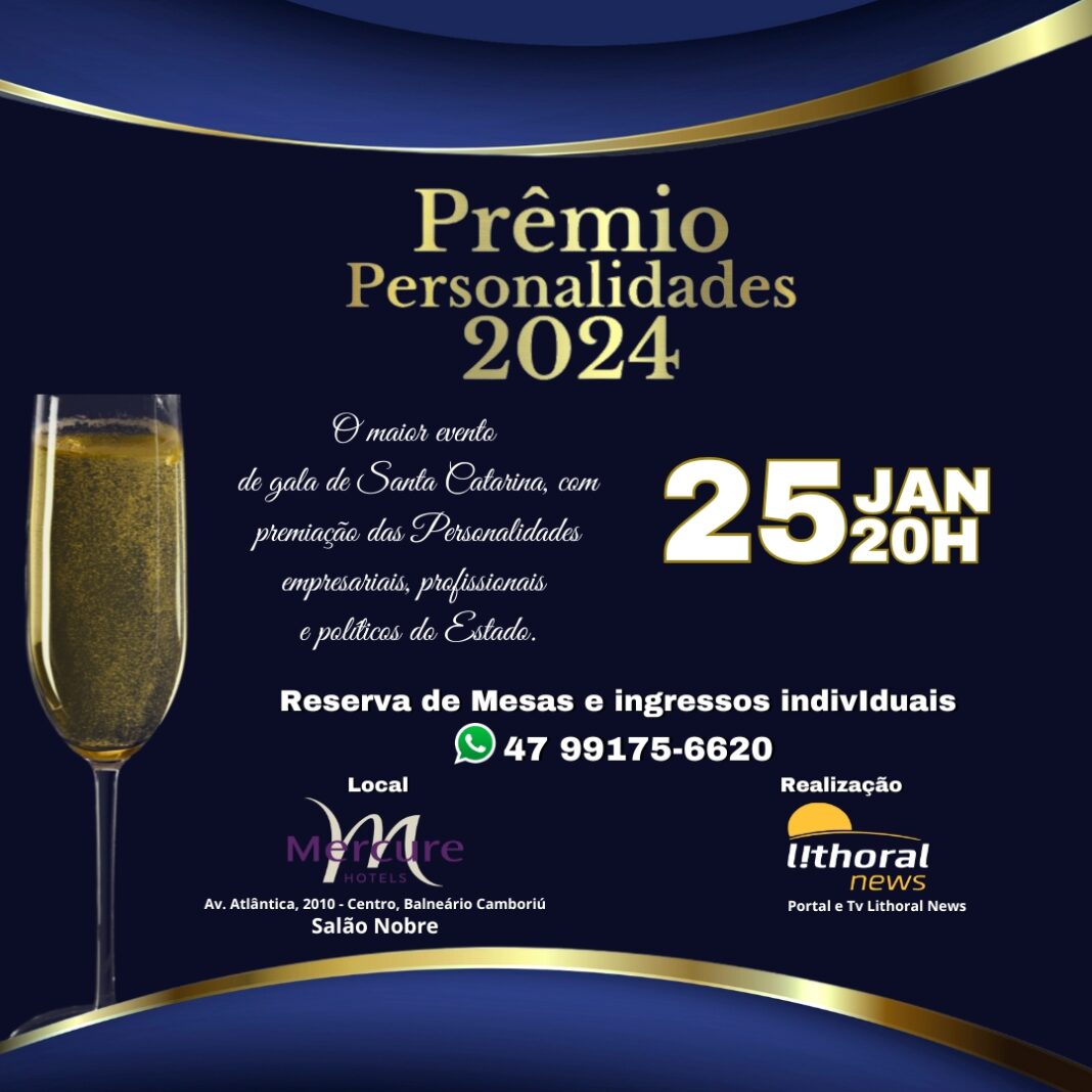 O PORTAL E TV LITHORAL NEWS REALIZOU NESTE FINAL DE SEMANA, DIA 25, O PRÊMIO PERSONALIDADES DO ANO, EDIÇÃO 2024, UMA DAS MAIS PRESTIGIADAS PREMIAÇÕES DE SANTA CATARINA, COM MAIS FOCO NA COSTA VERDE & MAR, QUE RECONHECE A EXCELÊNCIA PROFISSIONAL E EMPRESARIAL NA REGIÃO.