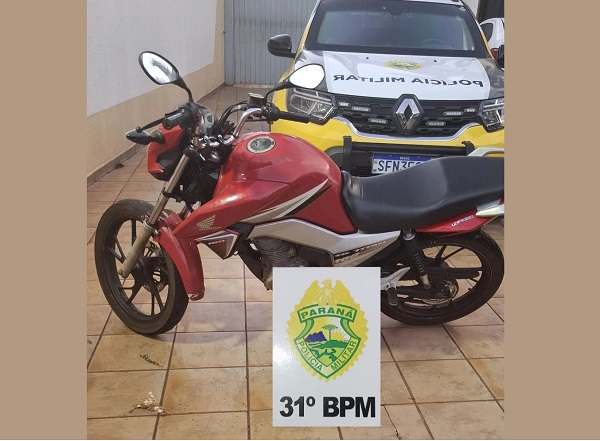 Em revista pessoal nada de ilícito foi encontrado, porém ao fazer busca veicular no sistema, foi apontado que a motocicleta estaria com alerta de furto/roubo.