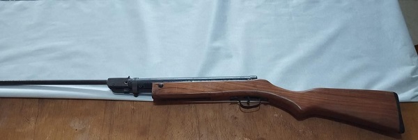 Ela ainda informou que o autor teria uma arma de fogo no interior de sua residência, dessa forma, a equipe foi até a residência do autor, este cooperou com a guarnição mostrando onde guardava uma espingarda cal. 22.