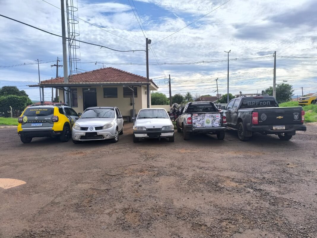 A abordagem levou à apreensão de cigarros contrabandeados e eletrônicos, no bairro Jardim Progresso, além de confirmar a intenção de contrabando dos ocupantes. Os veículos e mercadorias foram encaminhados para as autoridades competentes, e os envolvidos foram levados para a delegacia para as devidas providências.