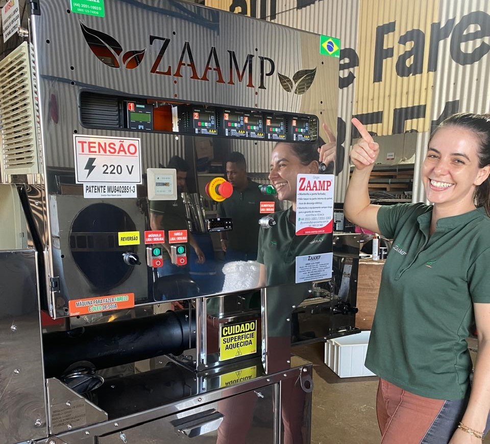 As máquinas da Zaamp são as únicas no Brasil a realizarem a extração a frio do óleo vegetal e no mesmo equipamento realizar o processamento do farelo. Com um aproveitamento acima 95% onde uma saca de 60 kg de soja, são extraídos 51 kg de farelo e 8 kg de óleo.