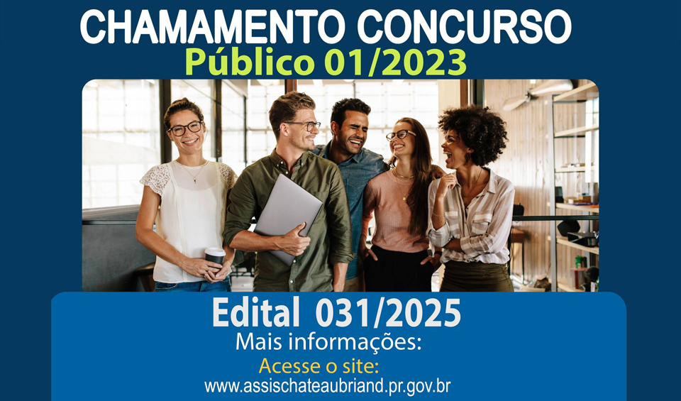 Publicado nesta quarta-feira (12), em diário oficial do município de Assis Chateaubriand, o edital 031/2025, tratando-se da quadragésima quarta convocação de candidato habilitado no concurso público 01/2023, visando à nomeação nos cargos de Assistente Social, Pedreiro Coveiro e Vigia.