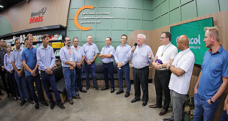 Para a entrega oficial da nova Loja Agropecuária, a Copacol recebeu cooperados, colaboradores e clientes. A reinauguração contou com a tradicional bênção das instalações realizada pelos padres Wilson José Ronfini e Marcelo da Silva Rocha, da Paróquia Nossa Senhora Consolata. Estiveram presentes também representantes de instituições financeiras e prestadoras de serviços.