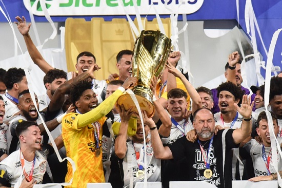 COM EMPATE POR 0 A 0 GARANTIDO APÓS O GOLEIRO HUGO SOUZA DEFENDER PÊNALTI DE RAPHAEL VEIGA, TIMÃO CONQUISTOU SEU 31º TÍTULO ESTADUAL; FOI A PRIMEIRA VEZ QUE UM DERBY EM ITAQUERA VALEU O CANECO