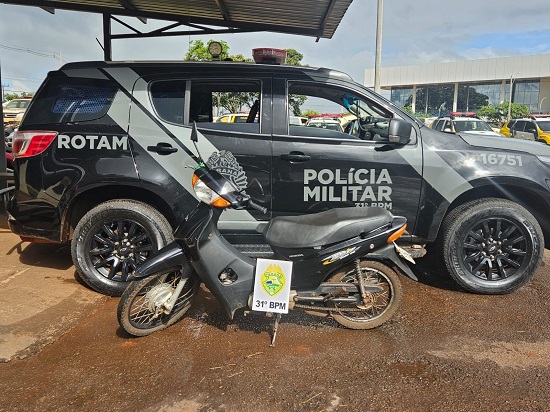 Uma equipe da ROTAM do 31º BPM, quando em patrulhamento pela Avenida Tupãssi, por volta das 14h35 de ontem (13), efetuou a abordagem de um bar, sendo constatado 9 homens, sendo que um destes estava em posse de uma motoneta Honda Biz a qual ostenta placa sem tarjeta.