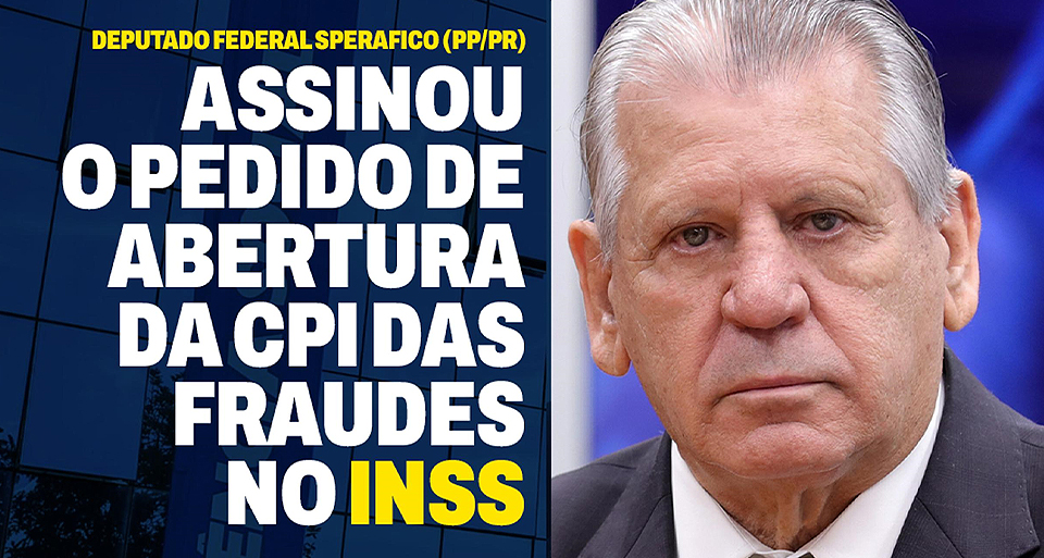O Deputado Federal Dilceu Sperafico (Progressistas/PR) assinou o requerimento de abertura da Comissão Parlamentar de Inquérito (CPI) das Fraudes no INSS, protocolado na Câmara dos Deputados pelo Deputado Coronel Chrisóstomo (PL-RO). A proposta busca investigar irregularidades em
