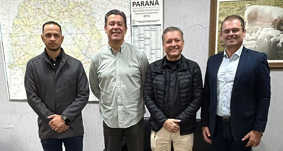 Em viagem a Curitiba, o Superintendente de Planejamento Estratégico e Inovação, Juan Carlos Alves, acompanhado do Assessor Jurídico Cloves Luiz Angeleli, participou de importantes reuniões na Secretaria de Estado da Agricultura e Abastecimento (SEAB). Eles foram recebidos por João, diretor técnico, e Ricardo, chefe de gabinete. Durante o encontro, discutiram a formalização de um convênio para a aquisição de equipamentos e maquinários, além de um acordo com a Secretaria de Agricultura no valor de R$ 3,7 milhões. Outro ponto relevante da pauta foram as normativas técnicas para a implementação do Programa Asfalto Rural no município de Assis Chateaubriand.