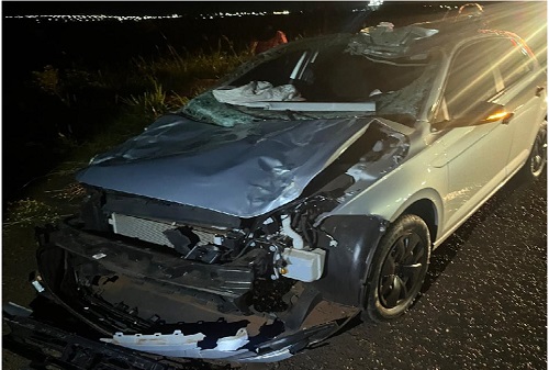 O carro, trata-se de um VW Polo Track, placas de Assis Chateaubriand, conduzido por um homem de 41 anos, tendo como passageiros, uma mulher de 40 anos e um adolescente de 13 anos.