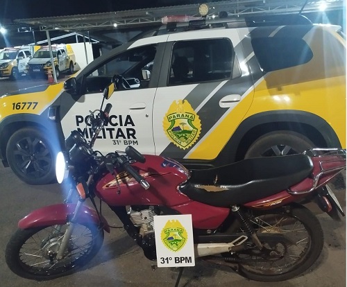 Por volta das 23h30 de ontem (26), uma equipe da PM recuperou uma motocicleta que foi furtada durante um acidente de trânsito, ocorrida na cidade.