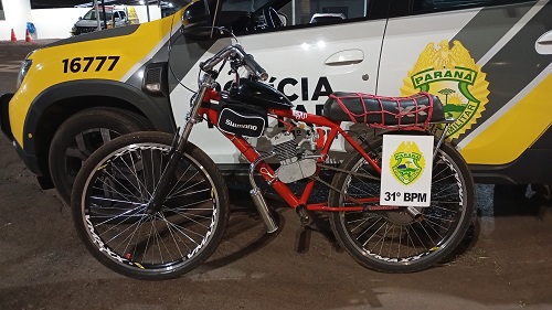 Por volta das 19h05 de ontem (27), uma equipe da RPA da Policip Militar, em patrulhamento pelo Jardim Progresso, visualizou um rapaz em uma bicicleta motorizada, essa que não possuía iluminação, nem placa, não estava com equipamento de proteção (capacete) e com descarga livre.