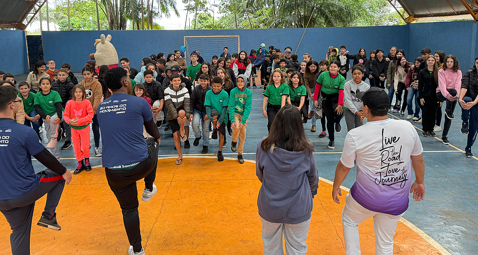 Durante o dia, a equipe percorreu escolas de Jesuítas e do distrito de Carajá, além da Copacol, da APAE e do prédio da Prefeitura, levando alongamentos, brincadeiras e dinâmicas voltadas ao bem-estar físico. A mobilização envolveu servidores, estudantes, professores e colaboradores das instituições visitadas.