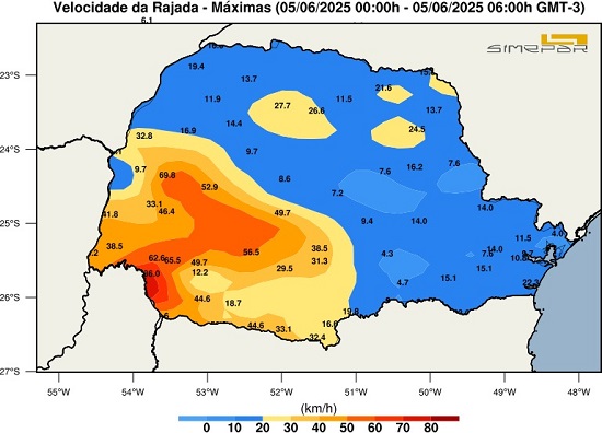 Ainda segundo o SIMEPAR, além de Assis Chateaubriand, rajadas de vento mais intensas registradas , com estações Simepar/INMET, até o momento, ocorreu também em Planalto (86 km/h), Condói (65,5 km/h) e Capanema (62,6 km/h).
