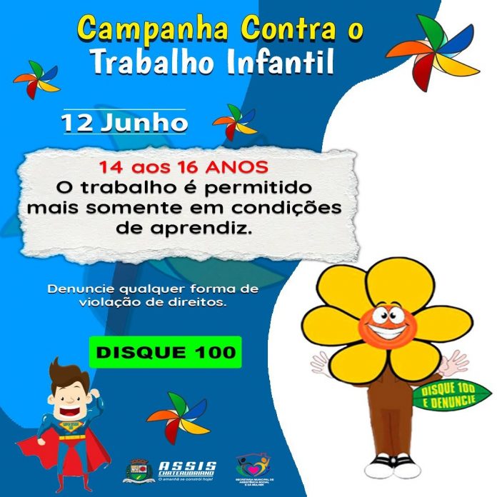 O Dia Mundial de Combate ao Trabalho Infantil é celebrado em 12 de junho, e neste sentido a Secretaria Municipal de Assistência Social está realizando a Campanha Municipal Contra o Trabalho Infantil. O principal objetivo é garantir que crianças e adolescentes tenham seus direitos protegidos, incluindo o direito de brincar, estudar e ter um futuro sem a exploração do trabalho infantil.