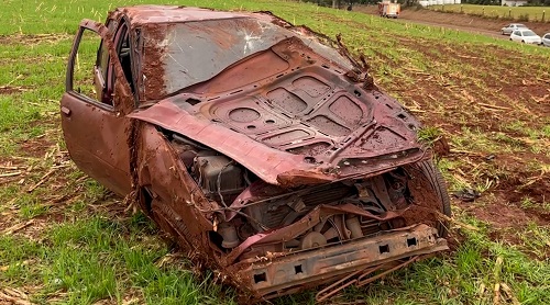 Um carro capotou por diversas vezes na tarde deste sábado (21) na PR-589, rodovia que liga o distrito de Novo Sarandi, em Toledo, ao município de Nova Santa Rosa.