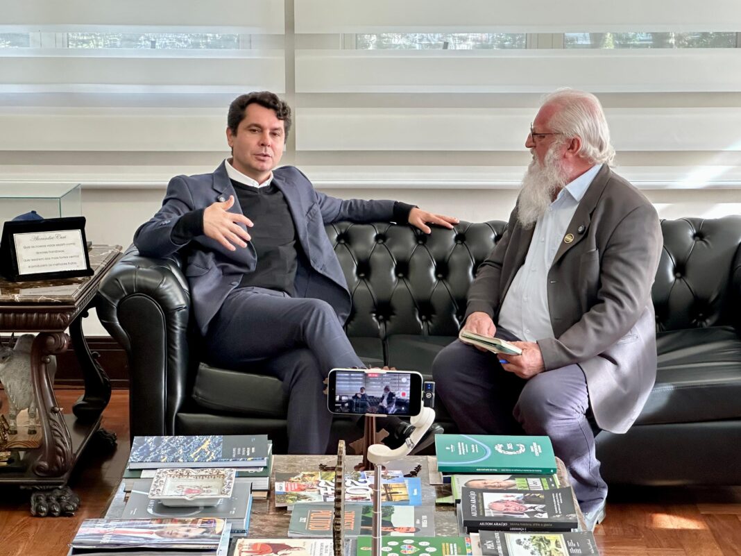 O diretor do Jornal Novo Tempo de Santa Isabel do Oeste, Sérgio Jonikaites, que também é associado da Adjori/PR, entrevistou o Presidente da Assembleia Legislativa do Paraná, deputado Alexandre Curi (PSD), que assumiu o cargo em fevereiro deste ano. Em seu gabinete, Curi, respondeu há vários questionamentos, abordando diversos temas. Descontraído, o Presidente destacou a importante parceria com a Adjori/PR, que vem de longa data.