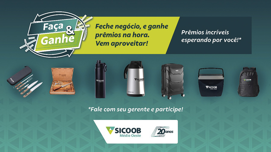 “Queremos recompensar a confiança e a fidelidade dos nossos cooperados, que são a razão do nosso sucesso. Com essa campanha, estamos oferecendo uma oportunidade para que todos participem. Venham fazer bons negócios com o Sicoob Médio Oeste. A campanha é válida para novas contratações de produtos e serviços e é inclusiva para pessoas que se associarem durante o período de vigência. Todas as informações e esclarecimentos estão com nossos gerentes de relacionamento”, destaca Rodrigo Dencati da Cruz, diretor Comercial do Sicoob Médio Oeste.