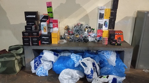 Durante a busca pessoal, nada de ilícito foi encontrado, mas no veículo havia diversas mercadorias estrangeiras sem nota fiscal, como celulares, perfumes, molinetes, cadeados, trenas e dispositivos Fire TV Stick.