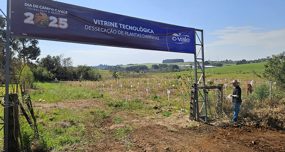A C.Vale de Clevelândia (PR) promove, neste sábado, 23 de agosto, um dia de campo sobre dessecação de plantas daninhas. Serão apresentadas 273 parcelas com diferentes combinações de herbicidas, para mostrar aos produtores as melhores ferramentas de controle de ervas. Dez empresas participarão do evento: Giro, Yara, Syngenta, Basf, Corteva, Sumitomo, Ihara, FMC, UPL e Ouro Fino. O dia de campo será realizado na propriedade de Celso Albino, rodovia PRC 280, quilômetro 176, em Clevelândia, a partir das 9h.