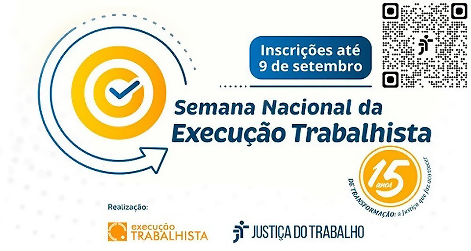 Com o tema “15 Anos de Transformação: a Justiça que faz Acontecer”, a Semana da Execução completa uma trajetória de resultados concretos: mais de R$ 22 bilhões movimentados e mais de 1 milhão de pessoas atendidas em todo o Brasil. A ação é promovida pelo Conselho Superior da Justiça do Trabalho (CSJT), por meio da Comissão Nacional de Efetividade da Execução Trabalhista, em parceria com os 24 Tribunais Regionais do Trabalho. A campanha de 2025 reforça o compromisso da Justiça do Trabalho com a cidadania, a dignidade e a justiça social.