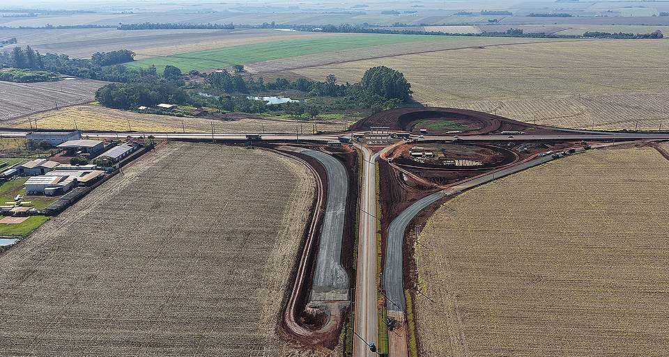 O trecho Palotina a Terra Roxa segue como o mais próximo do final, com execução em 75%. A ligação com Francisco Alves vem na sequência com 73%. A frente de trabalho que atua entre o trevo do complexo agroindustrial da C.Vale e a rodovia que liga Palotina a Assis Chateaubriand está com ritmo de execução em 66%. O asfaltamento de 15,2 quilômetros de rodovias está muito próximo da finalização, com 91% executados. No trevo que liga a PR 182 às indústrias, os trabalhadores atuam na construção das alças de acesso ao viaduto e na conclusão do asfaltamento.