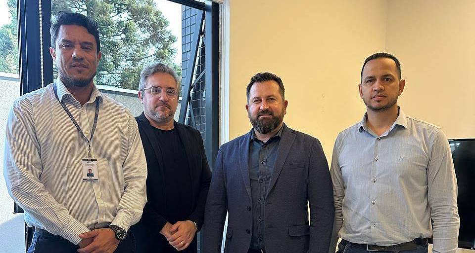 Participaram da reunião: Valdomiro Hrysay, Juan Carlos (superintendente de Planejamento e Inovação), Rodrigo Katarinhuk (gerente de Planejamento) e Alex Almeida, assessor parlamentar do deputado estadual Gugu Bueno.