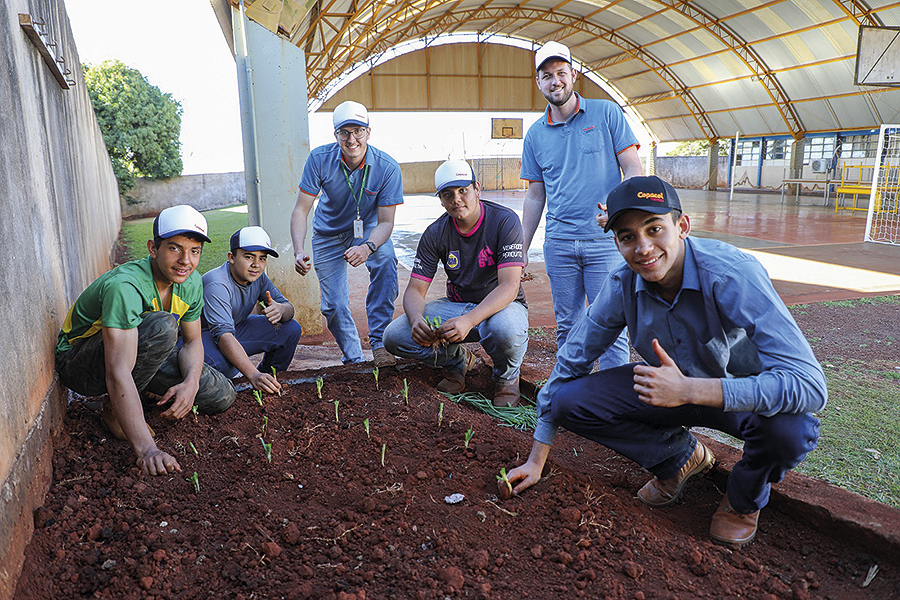 – Unidade Iracema do Oeste – colaboradores auxiliaram os alunos do Colégio Estadual Getúlio Vargas na implantação de uma horta educativa no pátio da instituição.