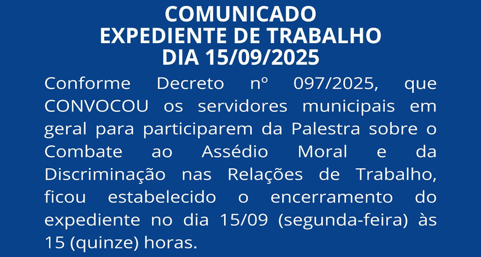 Através do Decreto 097/2025 expedido pela prefeita, Elza Haase Rodrigues, a Administração Municipal convocou todos os servidores municipais para participar da palestra com início às 16 horas, onde será registrada a presença para fins salarial.