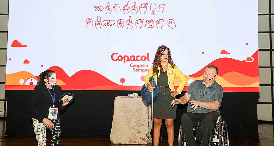 Além da palestra, o evento SuperAção, por meio de apresentações artísticas, trouxe uma reflexão de que histórias de superação não são apenas sobre vencer grandes obstáculos, mas sobre a jornada diária: manter a motivação diante de rejeições, buscar redes de apoio, celebrar pequenas conquistas e aprender com os tropeços. A apresentação da deficiente visual, Sara Bentis, cantora, compositora, atriz e escritora, foi um show à parte. Ela interpretou o Hino Nacional em libras, também interpretou músicas de sua autoria. “É sempre uma alegria poder compartilhar meu conhecimento e vivência em relação a adversidade, já que sou uma pessoa com deficiência visual total, e o que queremos é representatividade e protagonismo, então é uma alegria enorme estar aqui representando toda uma comunidade e poder compartilhar minha arte também”, destaca a artista, que teve a percepção de que a Copacol é uma empresa que cumpre o seu papel, que o é integrar pessoas com deficiência.