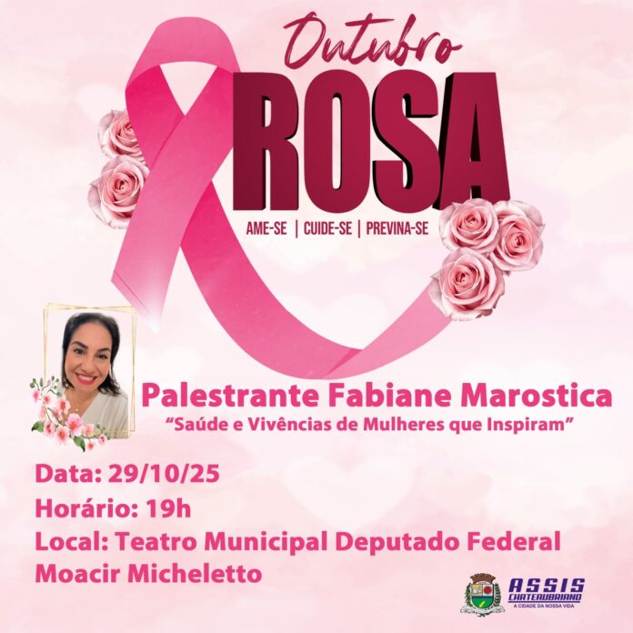 Como parte das atividades do Outubro Rosa, a Prefeitura de Assis Chateaubriand promoverá no dia 29 de outubro uma palestra especial no Teatro Municipal Deputado Federal Moacir Micheletto. O evento contará com a presença de Fabiane Maróstica, que abordará o tema: “Saúde e Vivências de Mulheres que Inspiram”.