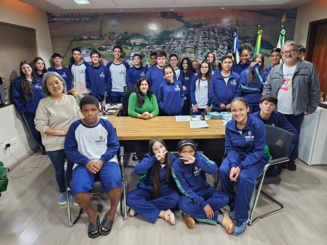 A prefeita Elza Haase Rodrigues recebeu, em seu gabinete, alunos do Colégio Estadual Getúlio Vargas, dos 9º anos do Ensino Fundamental e das 2ª e 3ª séries do Ensino Médio.