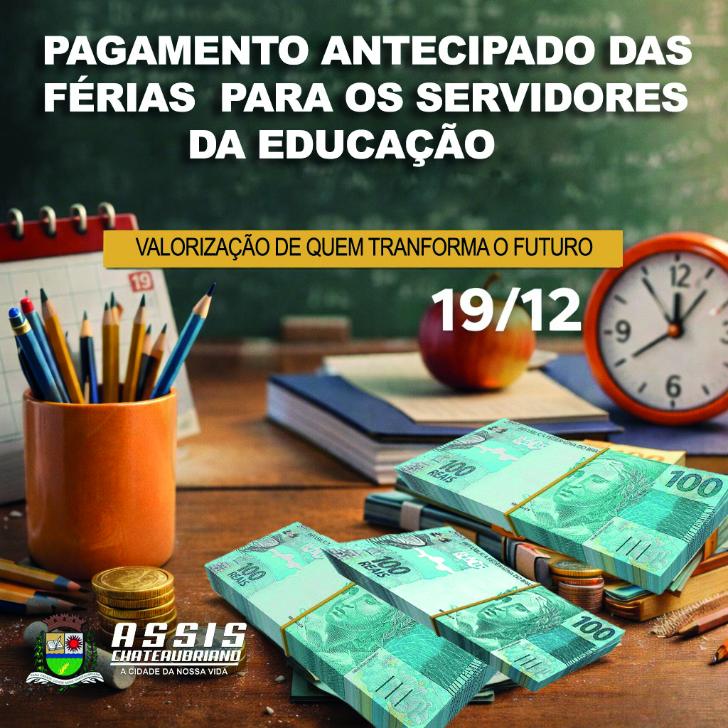 Pela primeira vez na história do município de Assis Chateaubriand, o prefeito Marcel Micheletto providenciou a antecipação do pagamento das férias dos servidores da Educação, que serão pagas juntamente com o salário do mês de dezembro.