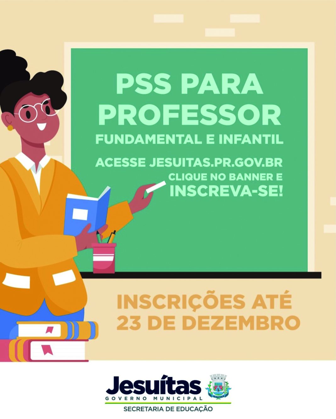 As inscrições são gratuitas e seguem até o dia 23 de dezembro. Para participar, os interessados devem seguir todas as orientações previstas no edital, que está disponível no site oficial do município jesuitas.pr.gov.br, acessando o banner flutuante referente ao PSS.
