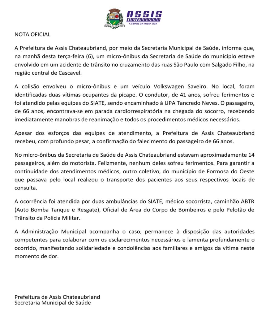 Nota Oficial da Prefeitura de Assis Chateaubriand