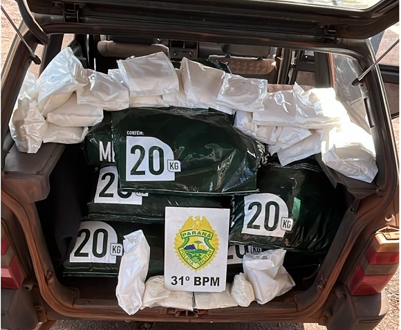 Por volta do meio dia e meio deste sábado, uma Equipe da Rádio Patrulha da PM de Assis Chateaubriand realizou a abordagem de um veículo que transitava pela rodovia de Assis sentido Jesuítas. Durante a fiscalização, constatou-se que o veículo transportava volumes identificados como fertilizantes, cobertos por uma manta preta, com o intuito de ludibriar a equipe.
