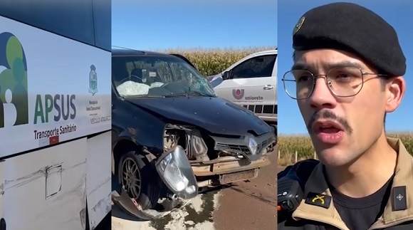 A batida envolveu um Renault Clio e um ônibus da Saúde de Assis Chateaubriand. O 2º Tenente Rhuan Marco explicou que o coletivo com pacientes seguia de Assis para Cascavel, quando se envolveu em batida com o Renault Clio, que trafegava no sentido contrário.