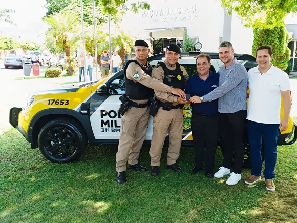 Na manhã desta quarta-feira (28), o município de Jesuítas recebeu uma nova viatura para o destacamento da Polícia Militar, entregue pelo deputado estadual Oziel Luiz “Batatinha”, sendo que o veículo faz parte agora da frota do 31º BPM, com sede em Assis Chateaubriand.