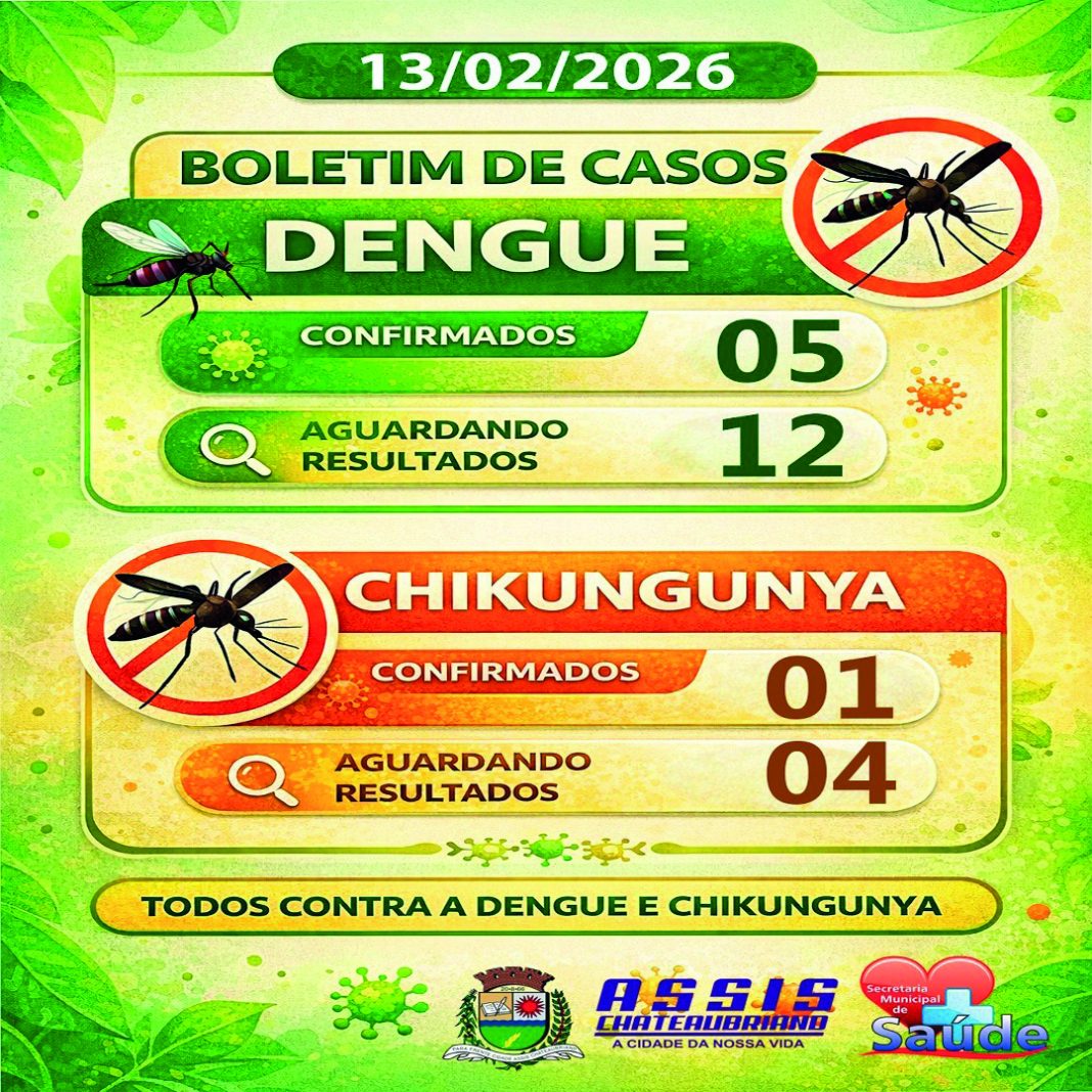 A Secretaria de Saúde de Assis Chateaubriand divulgou, nesta sexta-feira (13), um boletim epidemiológico atualizado com os dados sobre os casos de dengue e chikungunya no município. O documento destaca a importância das ações preventivas para o combate ao Aedes aegypti, mosquito transmissor dessas doenças.