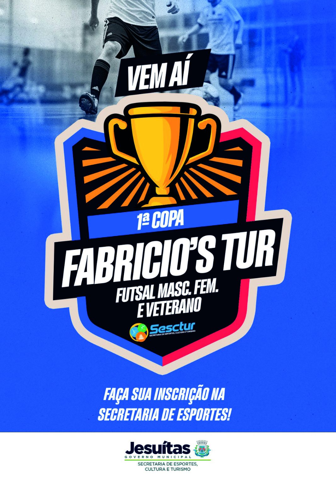 Jesuítas se prepara para receber mais um importante evento esportivo. A 1ª Copa Fabricio’s Tur de Futsal promete movimentar o município com disputas nas categorias Masculino, Feminino e Veteranos, reunindo atletas e fortalecendo o esporte local.
