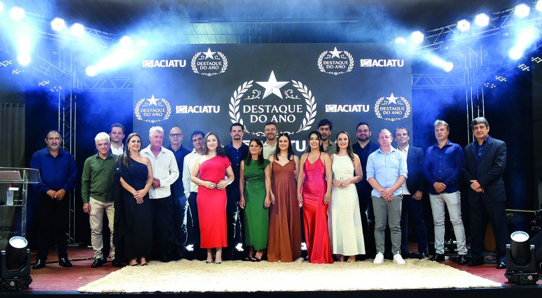 A Associação Comercial e Industrial de Tupãssi – ACIATU, realizou na noite do sábado, 21, no Salão Social da Paróquia Nossa Senhora de Lourdes, o Prêmio Destaque do Ano 2025 e comemorou os 41 anos de entidade completados no domingo, 22 de fevereiro. O evento contou com presenças de autoridades, empresários e profissionais de diversas áreas, e teve como objetivo reconhecer e homenagear as pessoas e empresas que se destacaram em suas atividades e contribuíram para o desenvolvimento da comunidade.