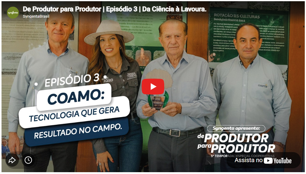 O terceiro episódio da websérie “De Produtor para Produtor – 5ª Temporada: Especial Cooperativas”, produzida pela Syngenta Brasil, tem como cenário a Coamo, apresentando o trabalho da cooperativa na transformação de tecnologia em produtividade, sustentabilidade e rentabilidade para seus mais de 32,7 mil cooperados.