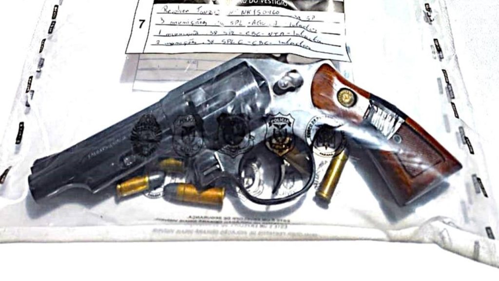 No local, as equipes realizaram a abordagem e visualizaram a arma na cintura do suspeito. Foi apreendido um revólver calibre .38, municiado com seis munições intactas.